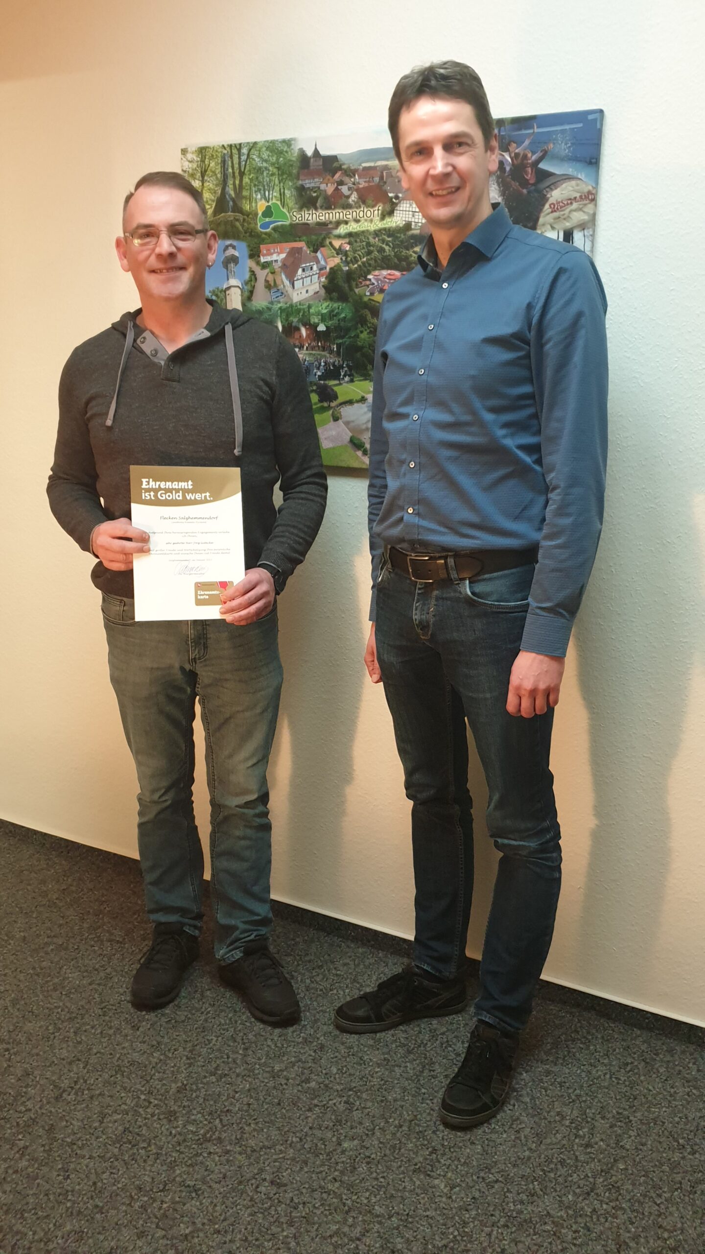 Salzhemmendorf. Zur Verleihung der Ehrenamtskarte hatte Bürgermeister Clemens Pommerening Jörg Gutacker eingeladen, der mit seinem ehrenamtlichen Engagement