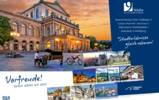 Hameln. Die Hameln Marketing und Tourismus GmbH (HMT) macht im Städteverbund Lust auf sommerliche Temperaturen und attraktive Wochenendtrips auf eigene Faust. Vorfreude garantiert. Großflächenplakate in niedersächsischen Städten und in benachbarten Bundesländern zeigen „Stadterlebnisse gleich nebenan“. „Sicher sehen wir uns“ ist das Motto der Kampagne. Für viele, die aktuell nicht die große Urlaubsreise planen können, soll Vorfreude auf entspannte Stadterkundungen geweckt
